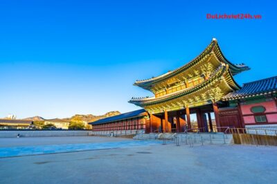 - Thăm quan Cung điện Gyeoungbok gung – là cung điện hoàng gia đại diện lớn nhất Hàn Quốc, trưng bày các kiến trúc đẹp của Hàn Quốc. Nơi đây thể hiện một sự hài hòa tuyệt đẹp với thiên nhiên, du khách có thể chụp những tấm ảnh tuyệt đẹp về nơi đây.